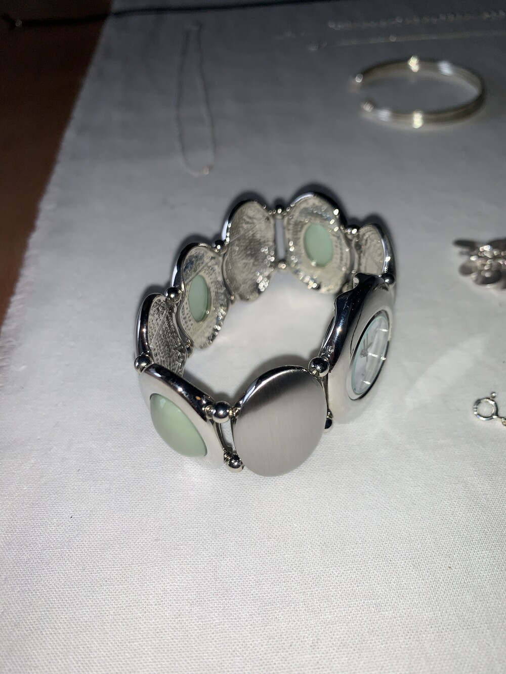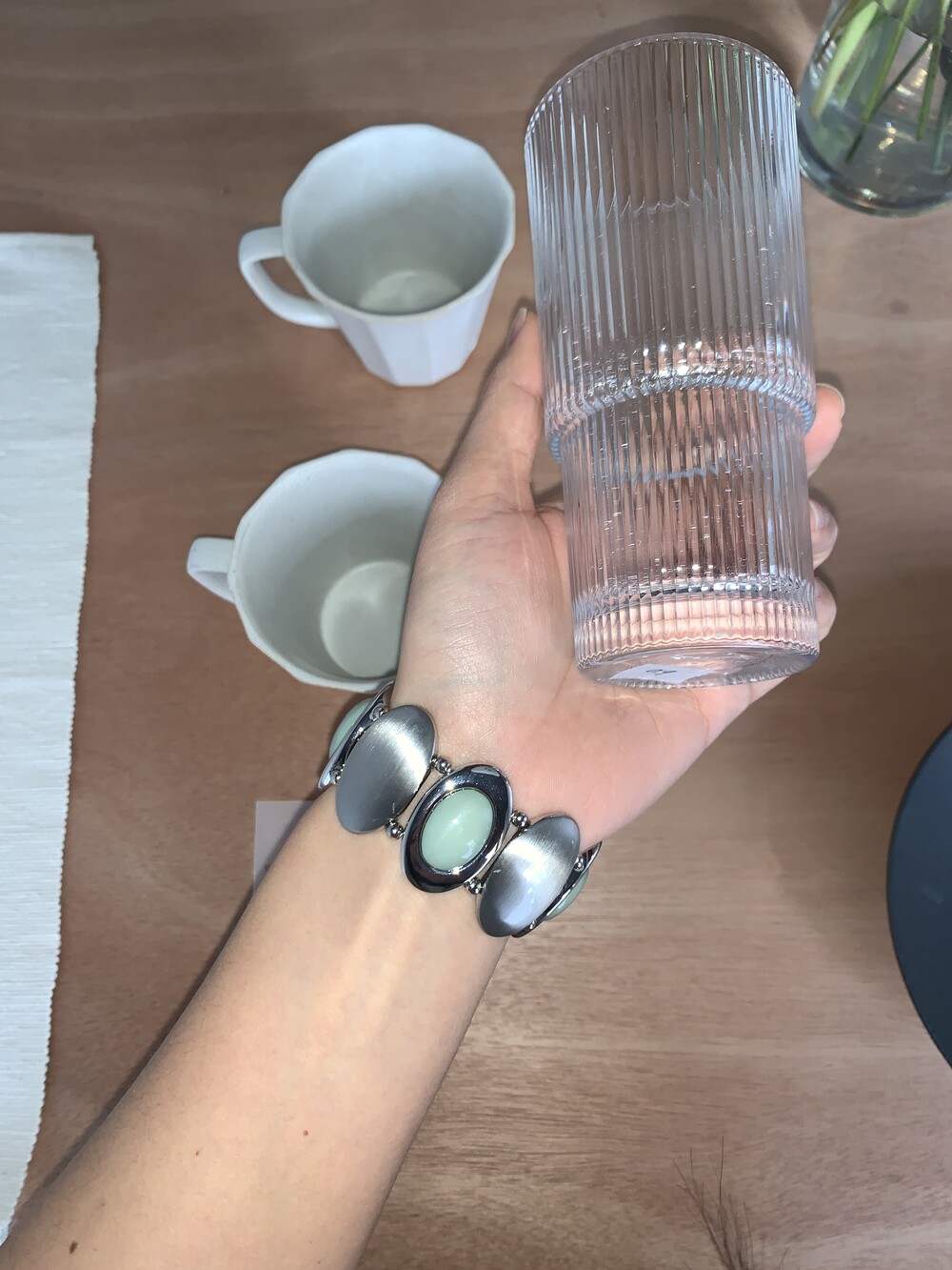 - 팔찌 형태로 착용할 수 있도록 제작된 제품입니다. 손목 두께에 따라 편하게 매치가 가능한 타입으로 부담없이 연출해보세요.