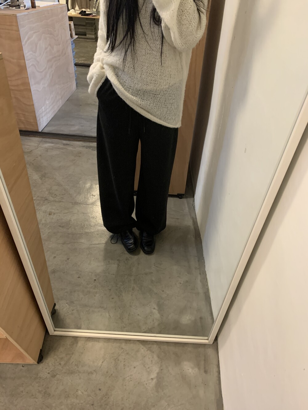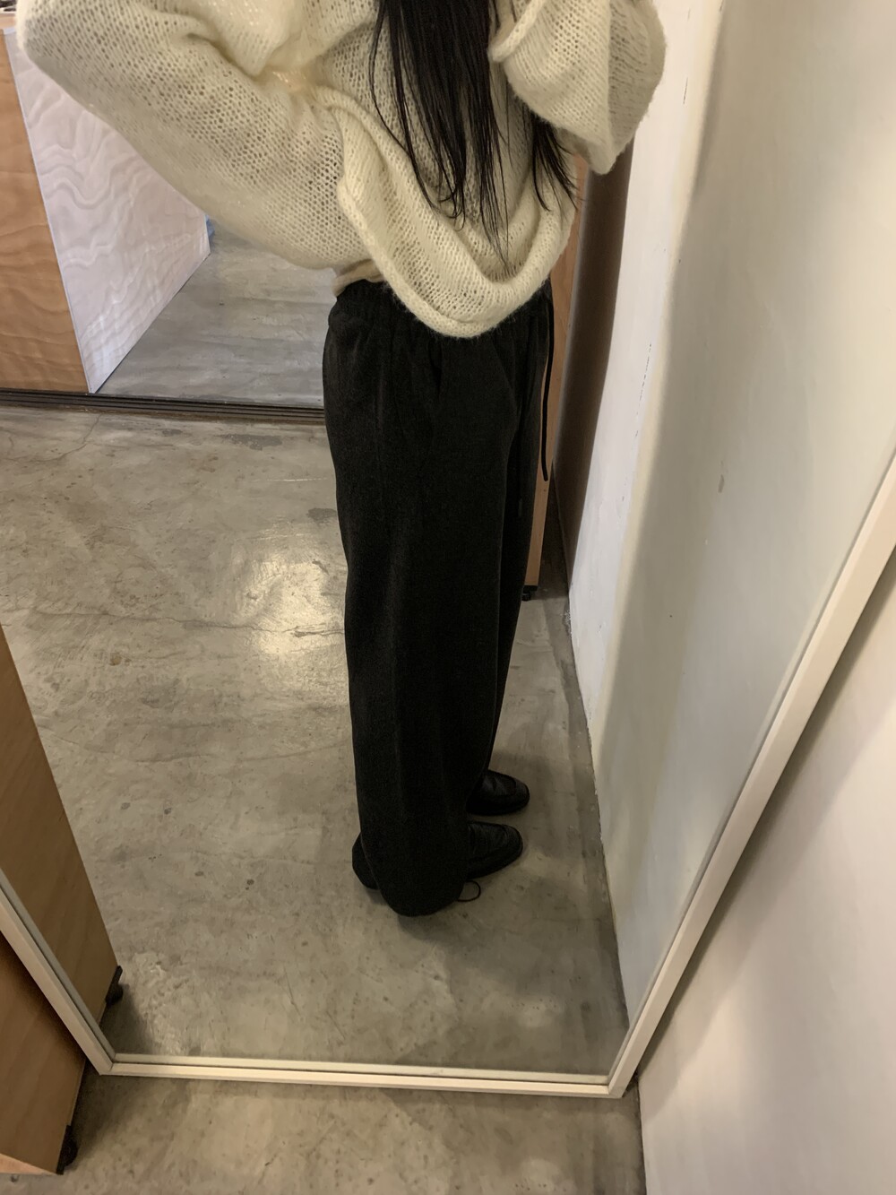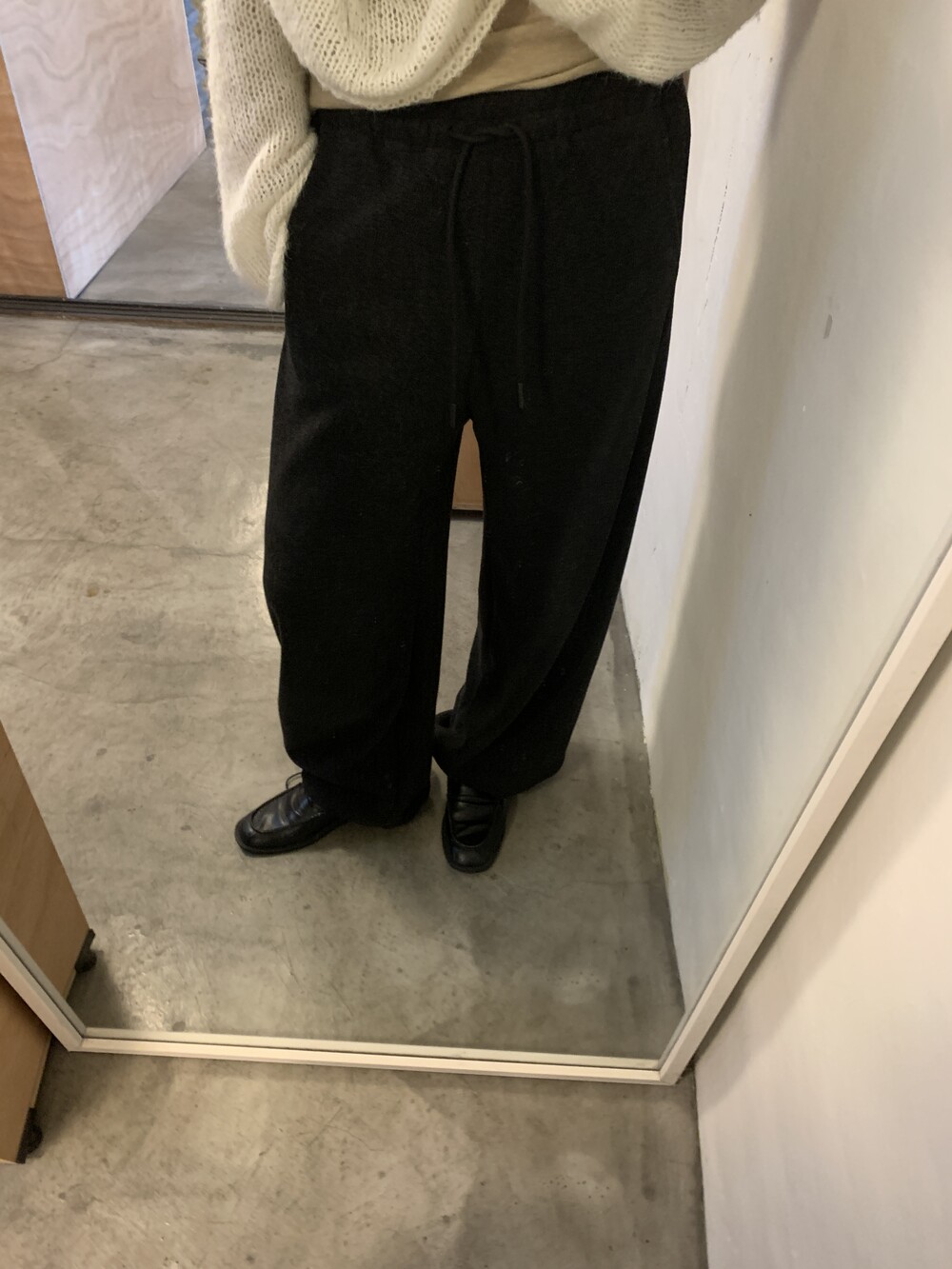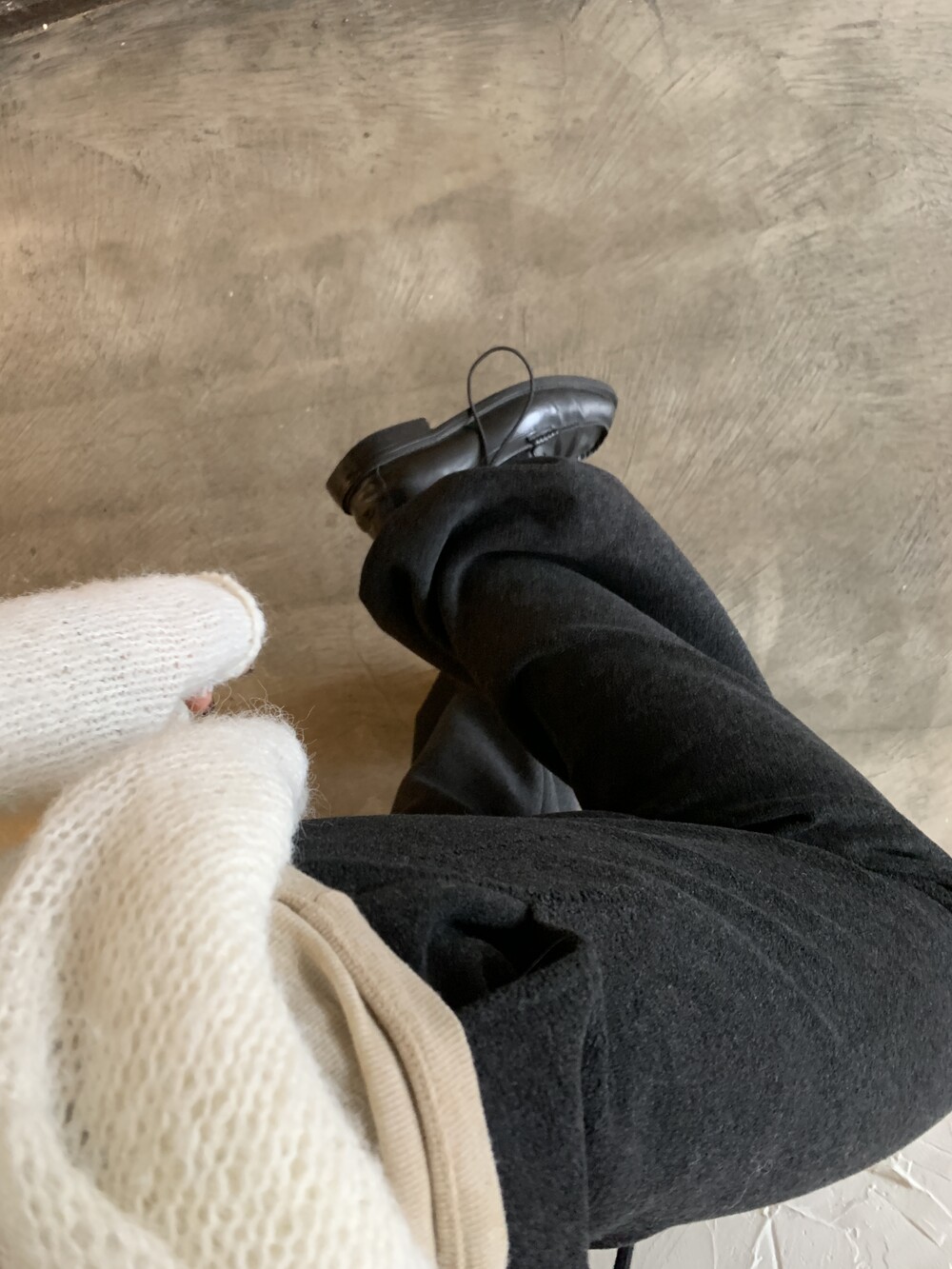 올해 가장 잘 구매한 아이템을 뽑자면 바로 이 제품일 것 같아요. 면으로된 스웻팬츠는 너무 캐주얼하거나 부해보이는 느낌이 있어서 잘 입지않는데 이 제품은 스트레이트한 슬랙스 느낌으로 떨어져서 단정한 룩에도 매치가 가능해요.
