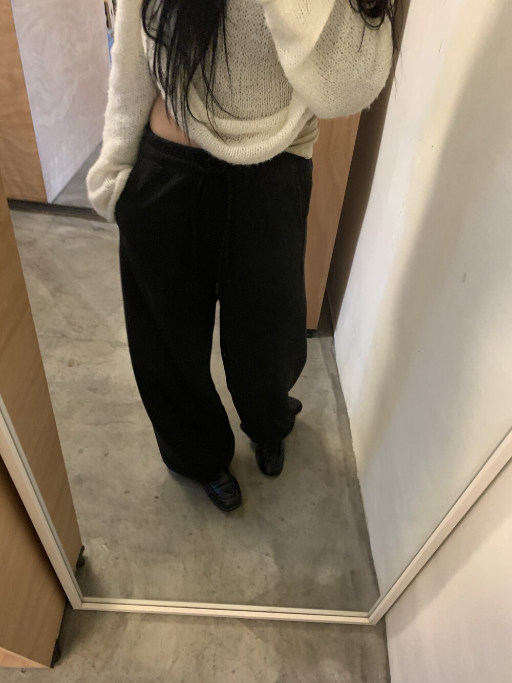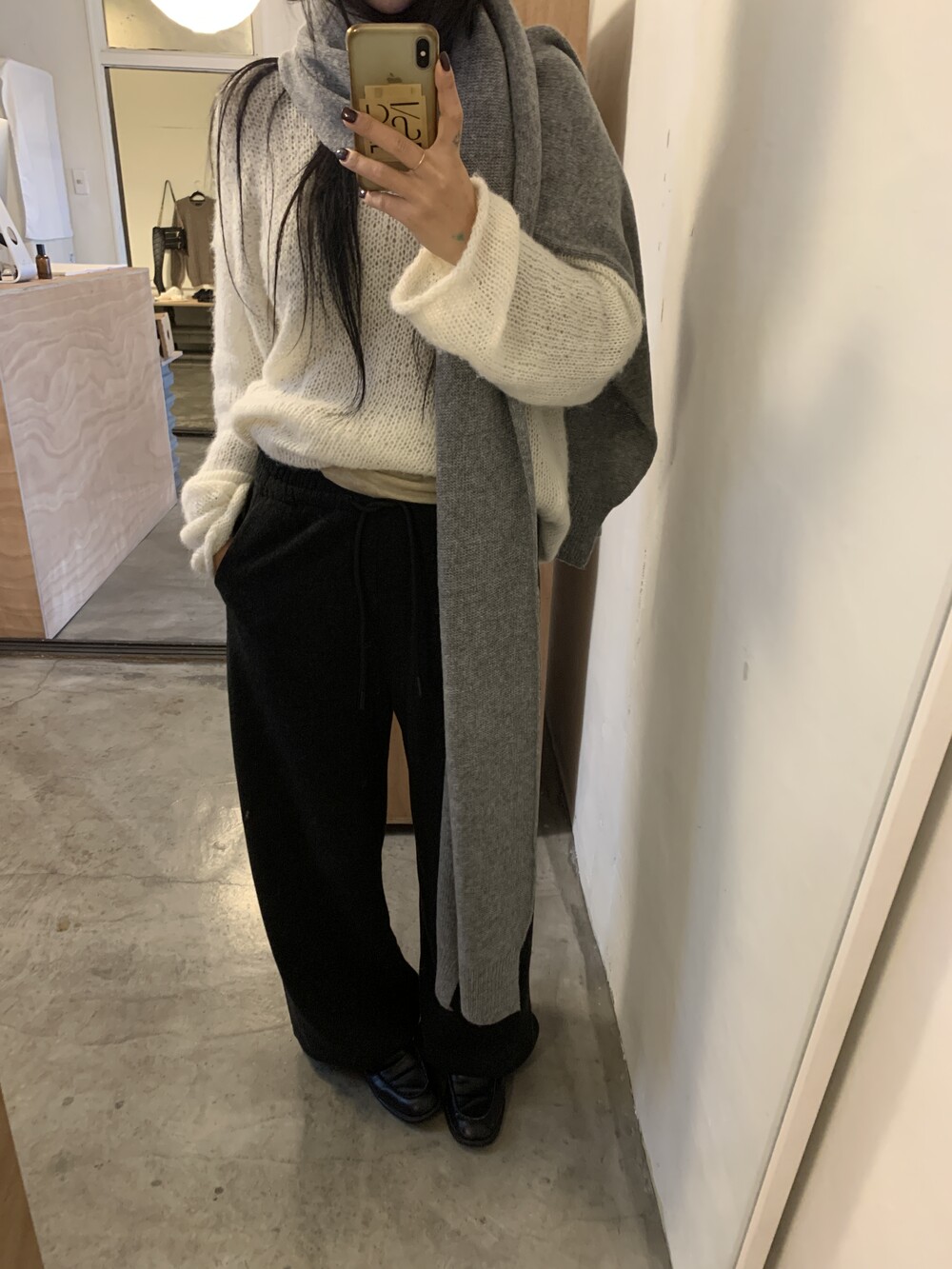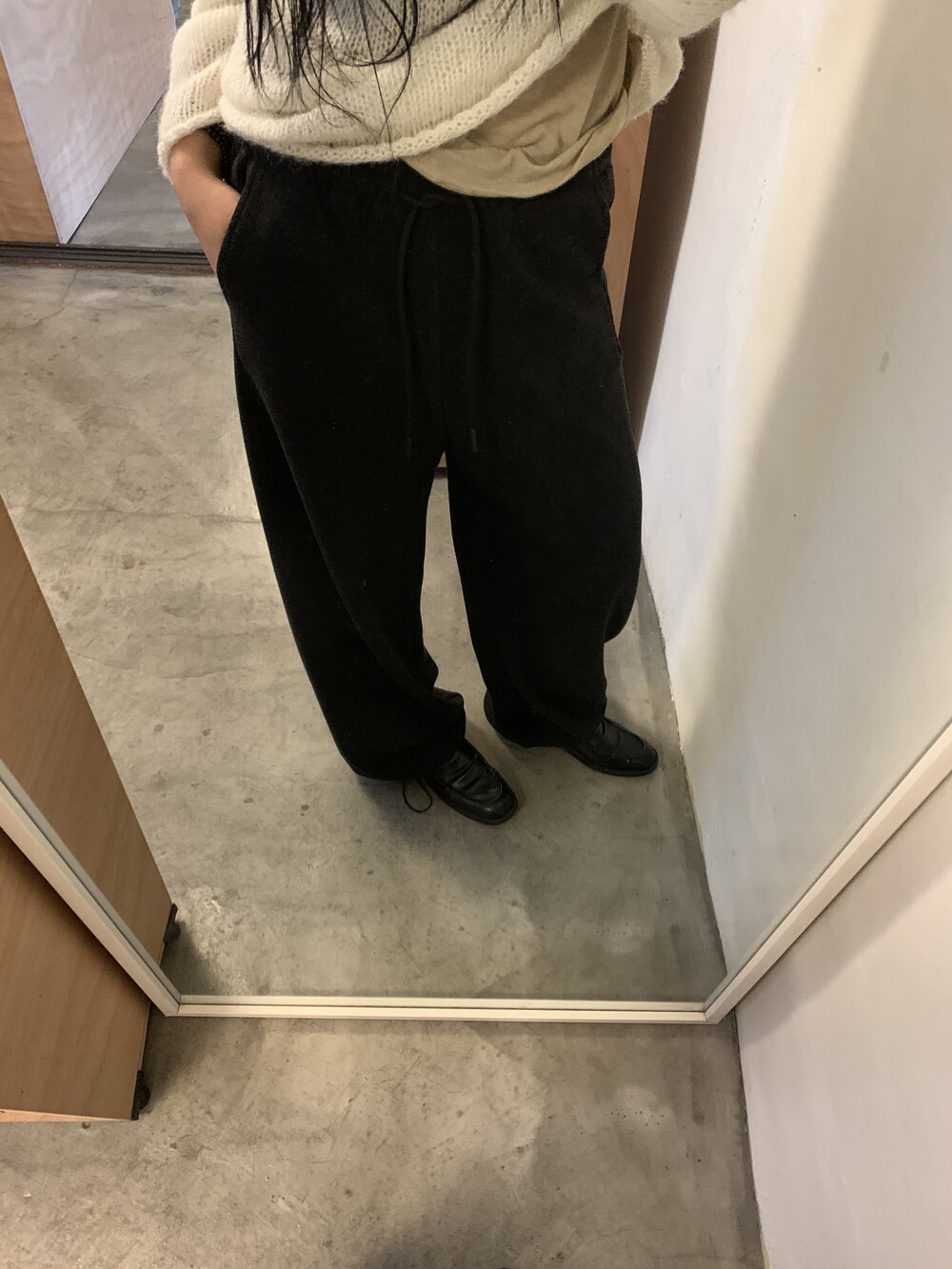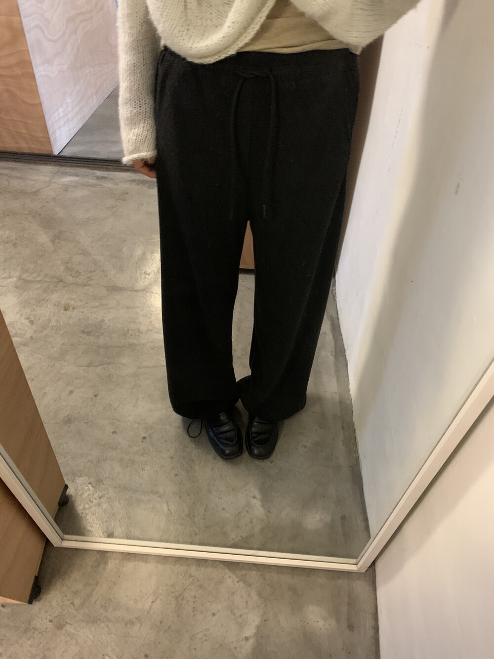 올해 가장 잘 구매한 아이템을 뽑자면 바로 이 제품일 것 같아요. 면으로된 스웻팬츠는 너무 캐주얼하거나 부해보이는 느낌이 있어서 잘 입지않는데 이 제품은 스트레이트한 슬랙스 느낌으로 떨어져서 단정한 룩에도 매치가 가능해요.