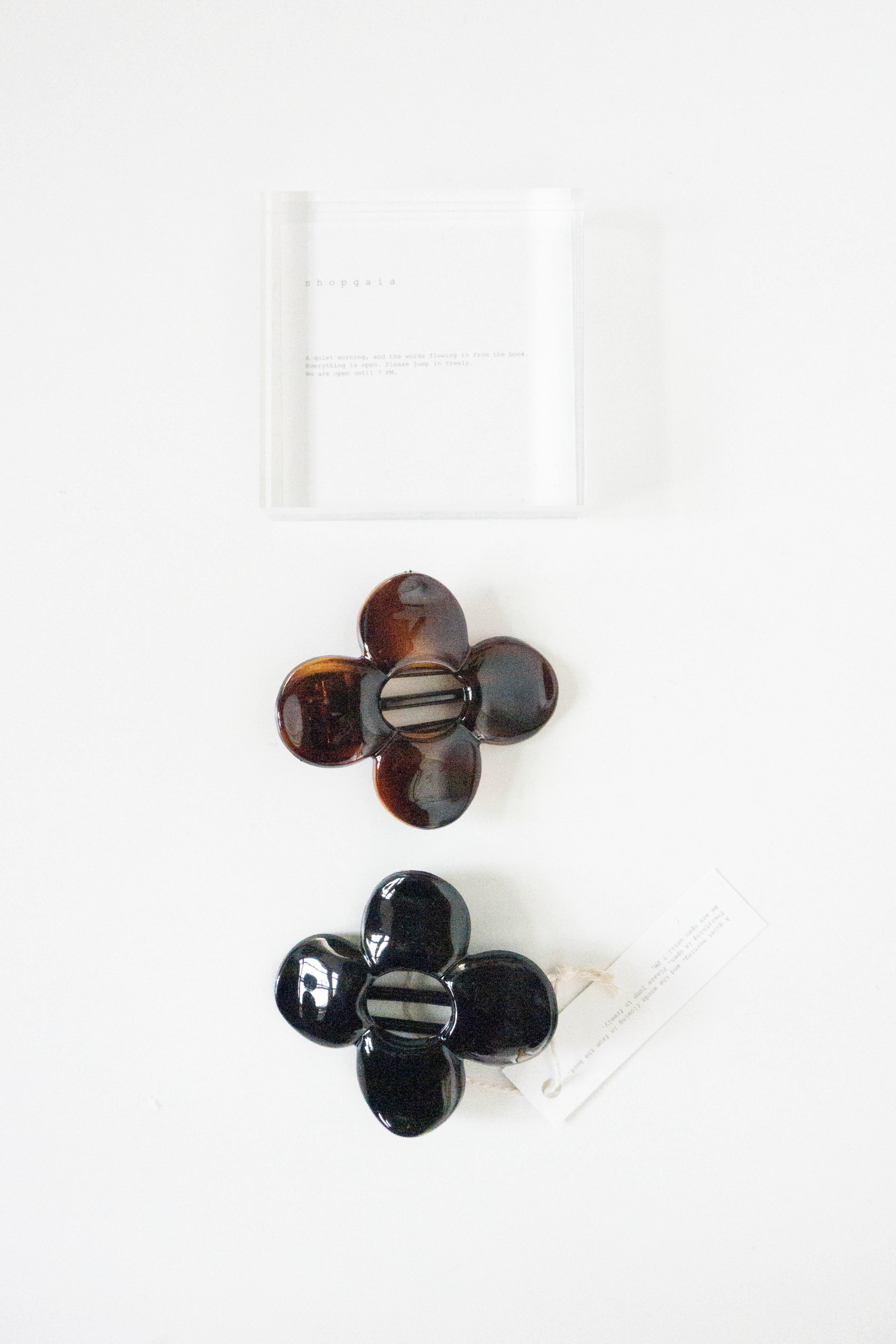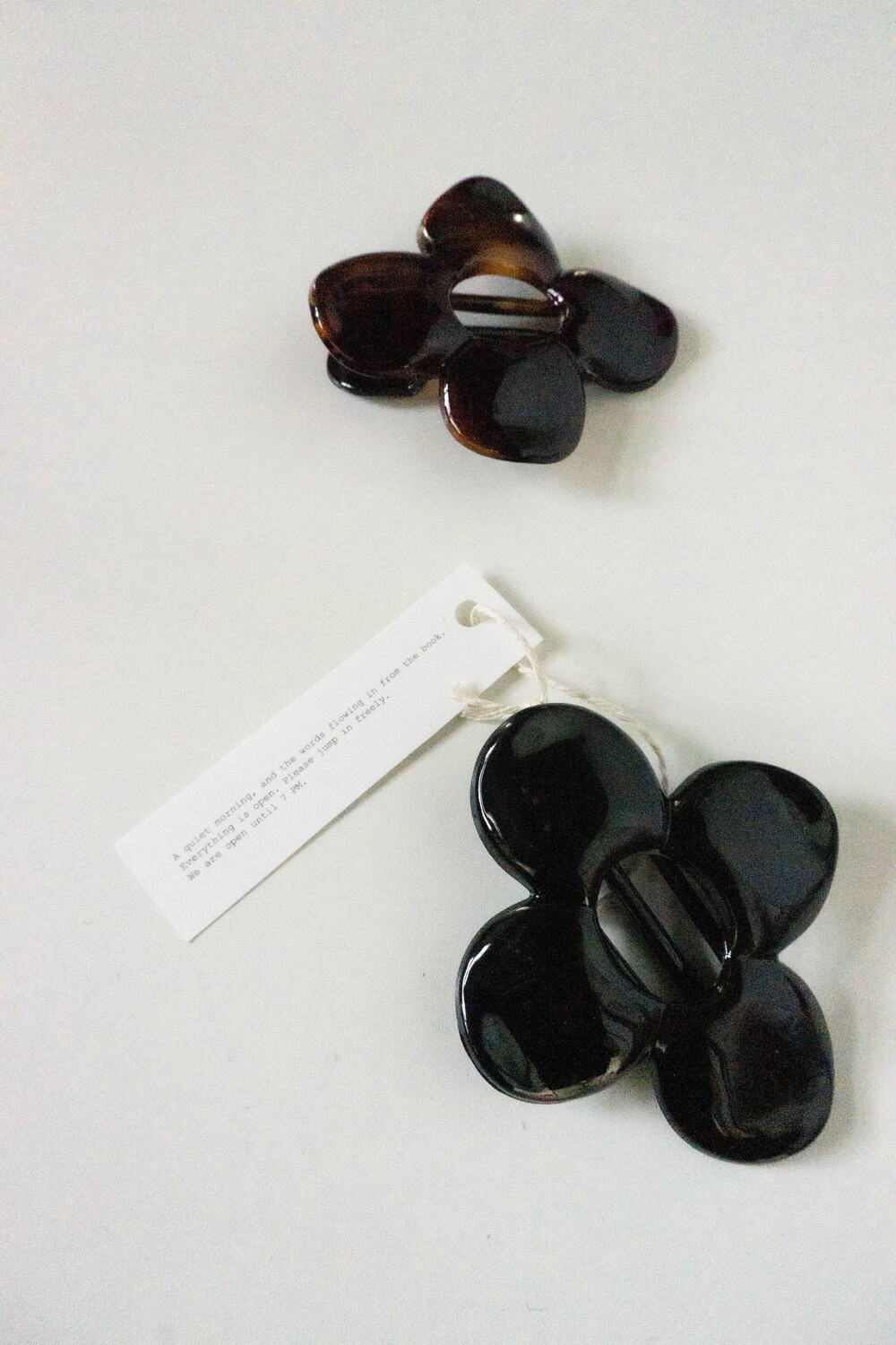 Made in France, 아세테이트 헤어클립으로 플라워 모양이 귀여워 눈을 뗄 수 없는 제품입니다. 머리를 가볍게 묶은 후 원하는 곳에 꽂아 스타일링해주세요. 지나가는 사람들이 슥 - 하고 쳐다보게될..