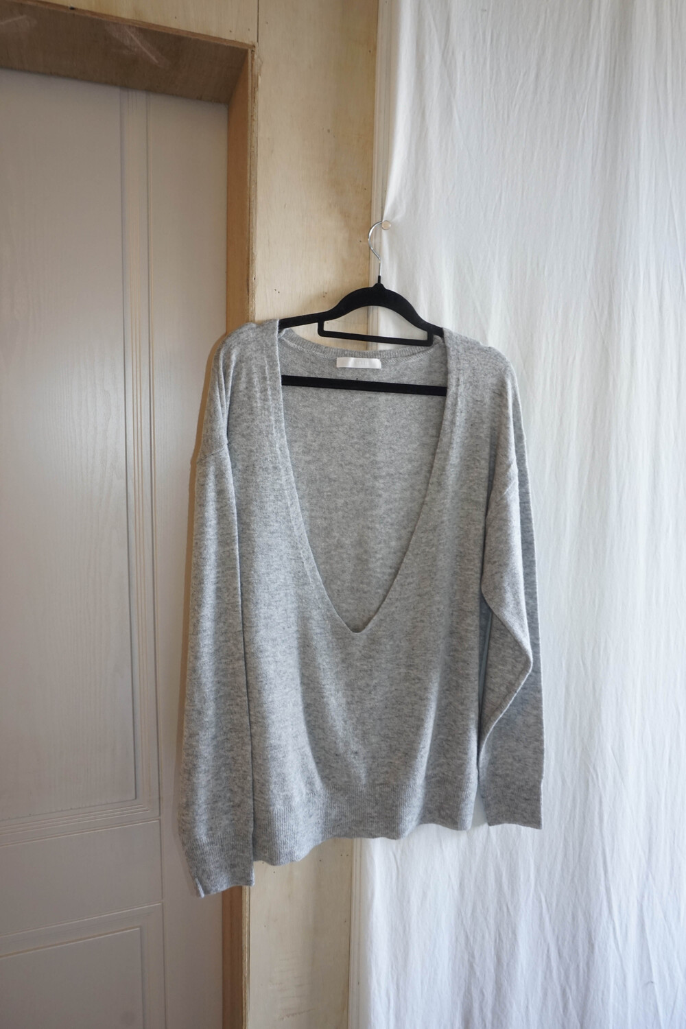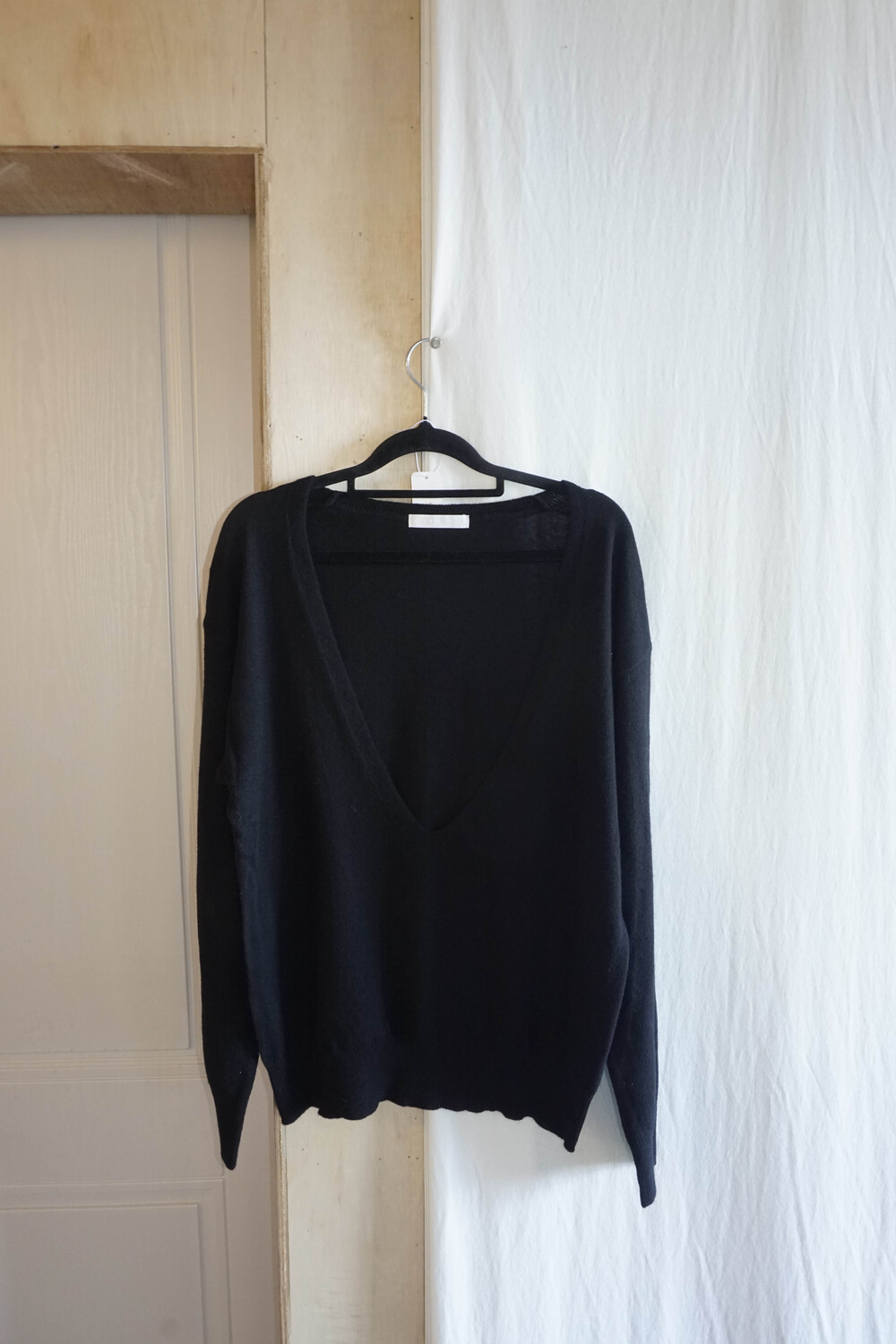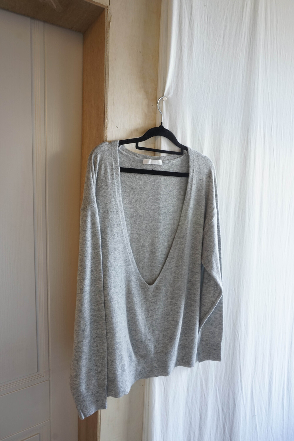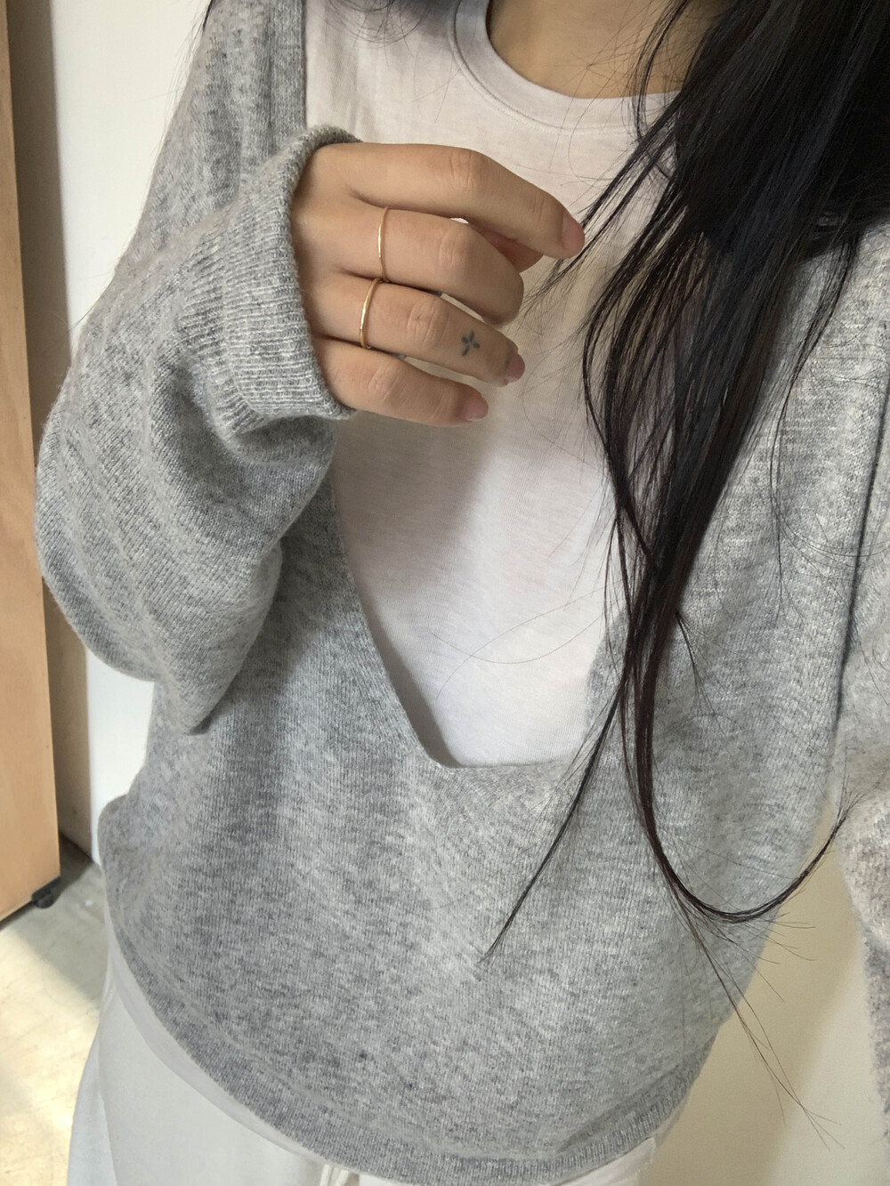딥한 브이넥으로 레이어드에 용이한 니트제품을 소개드립니다.