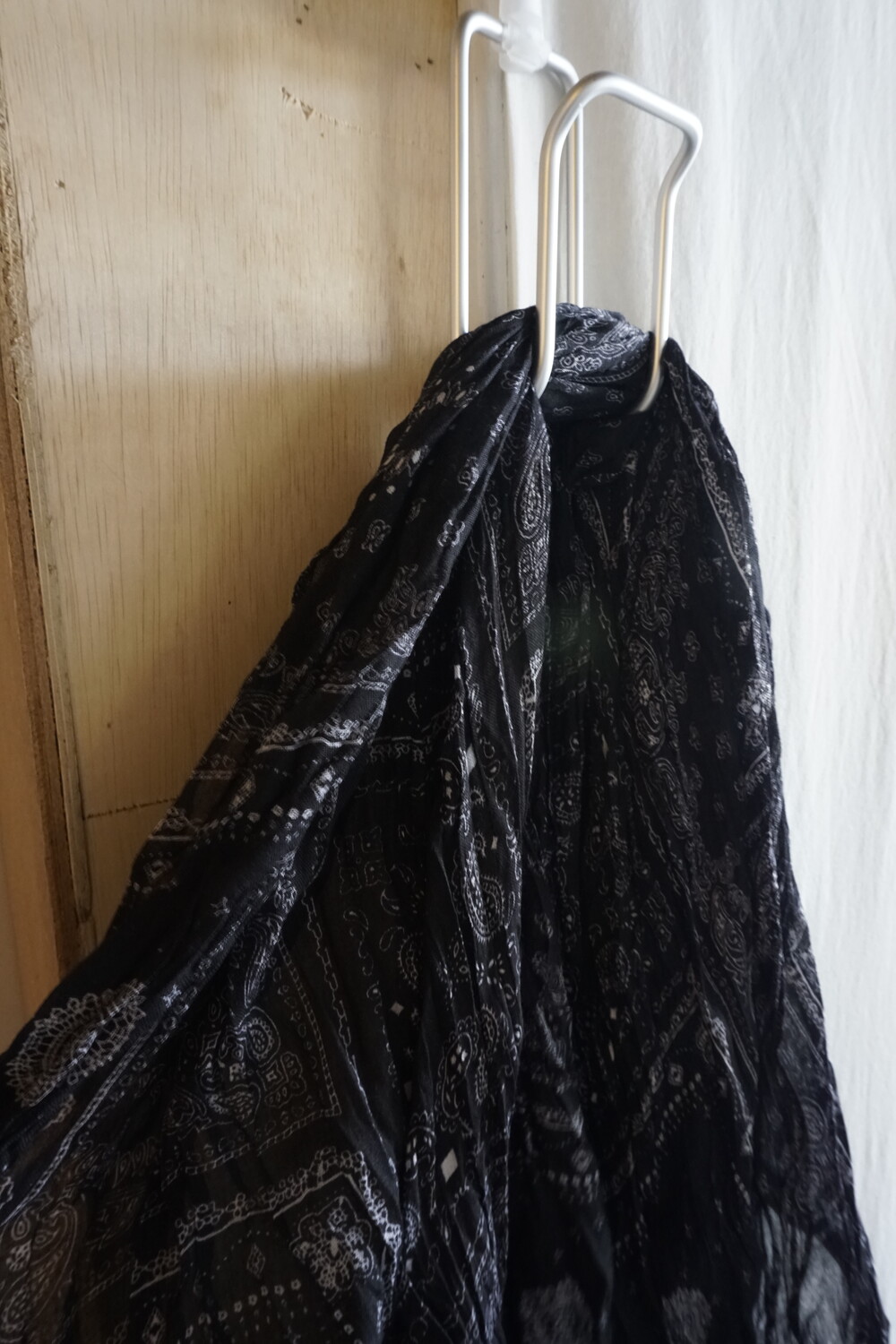 제가 사랑하는 페이즐리 패턴의 스카프입니다. 부드러운 거즈 소재와, 넓고 긴 폭 ! 다양하게 휙휙- 감아서 매치하기 좋은 제품이에요.
