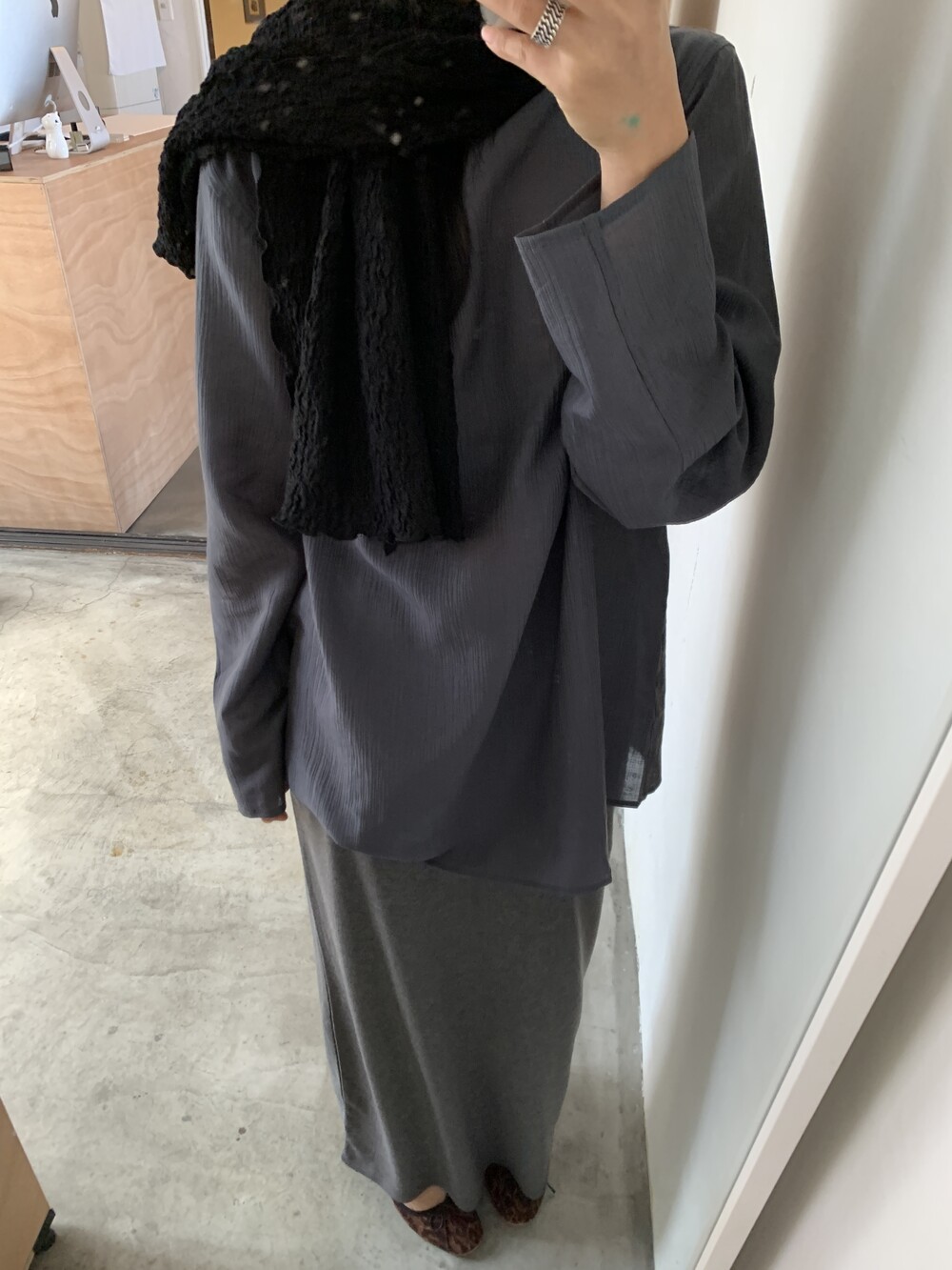 살랑거리는 소재감과 텍스처의 고급스러움이 아주 매력적이에요. 여름까지 쭉 착용할 수 있는 아이템으로 고민도 안하고 바로 소장한 제품이에요.