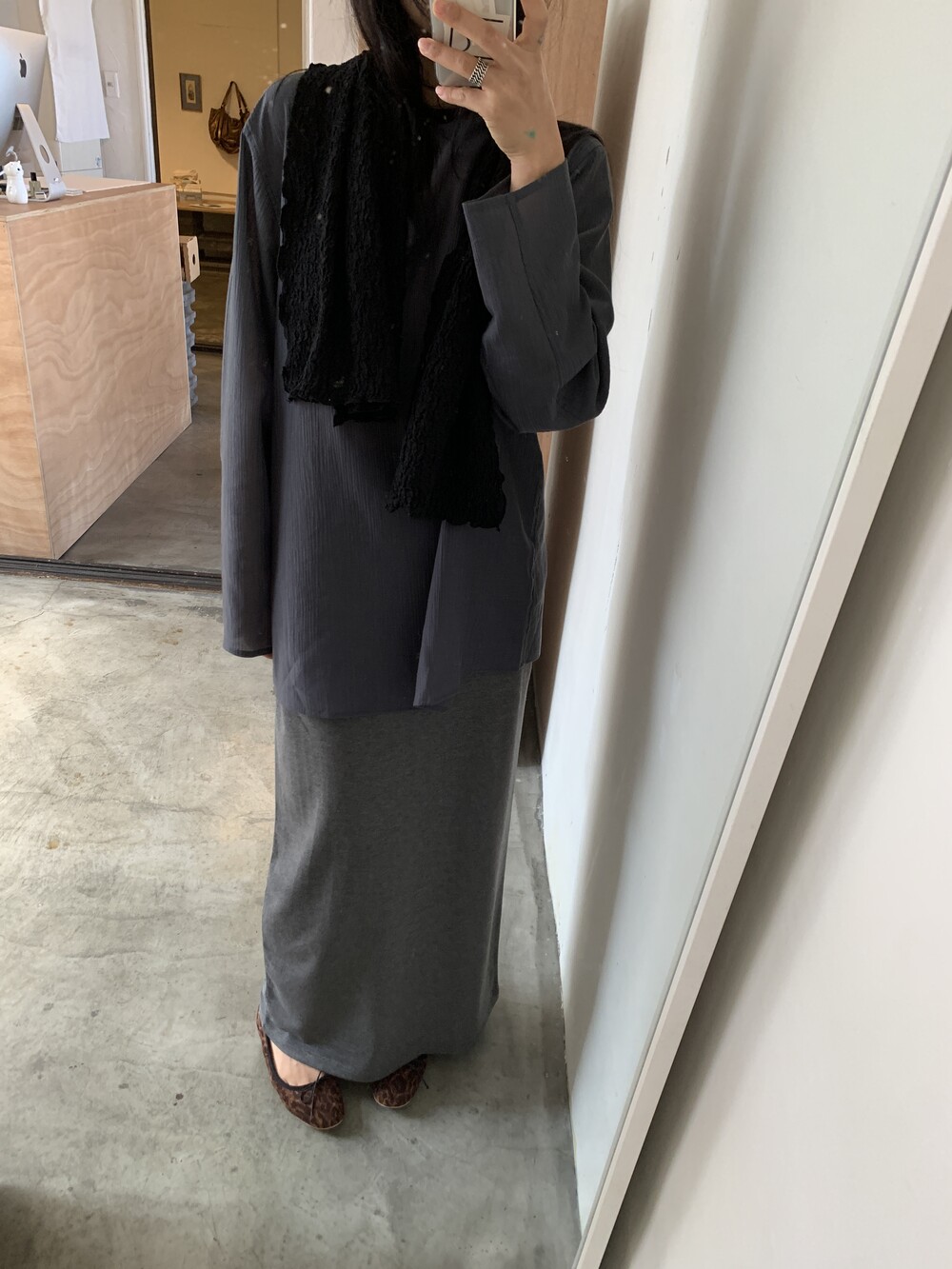 촤르르 흐르는 소재감과 부드러운 텐션으로 몸의 라인을 아름답게 보이게 만들어주는 스커트입니다.