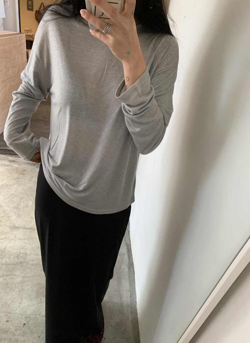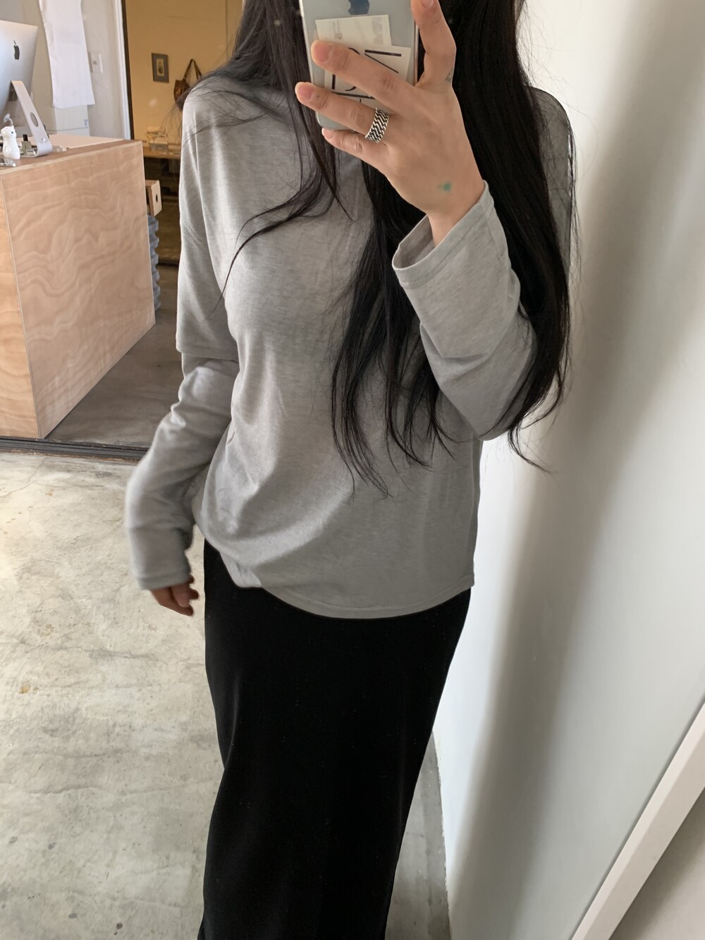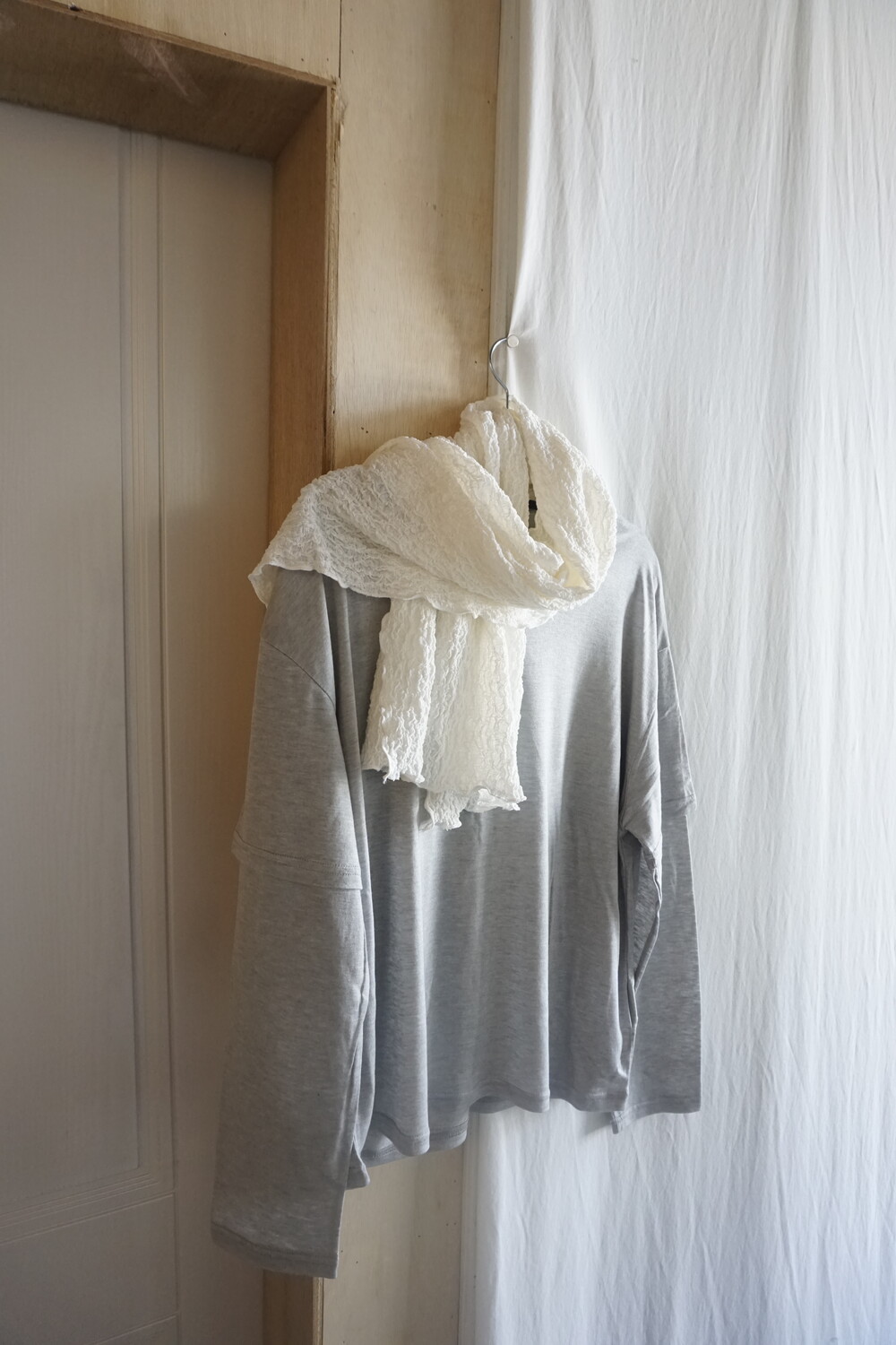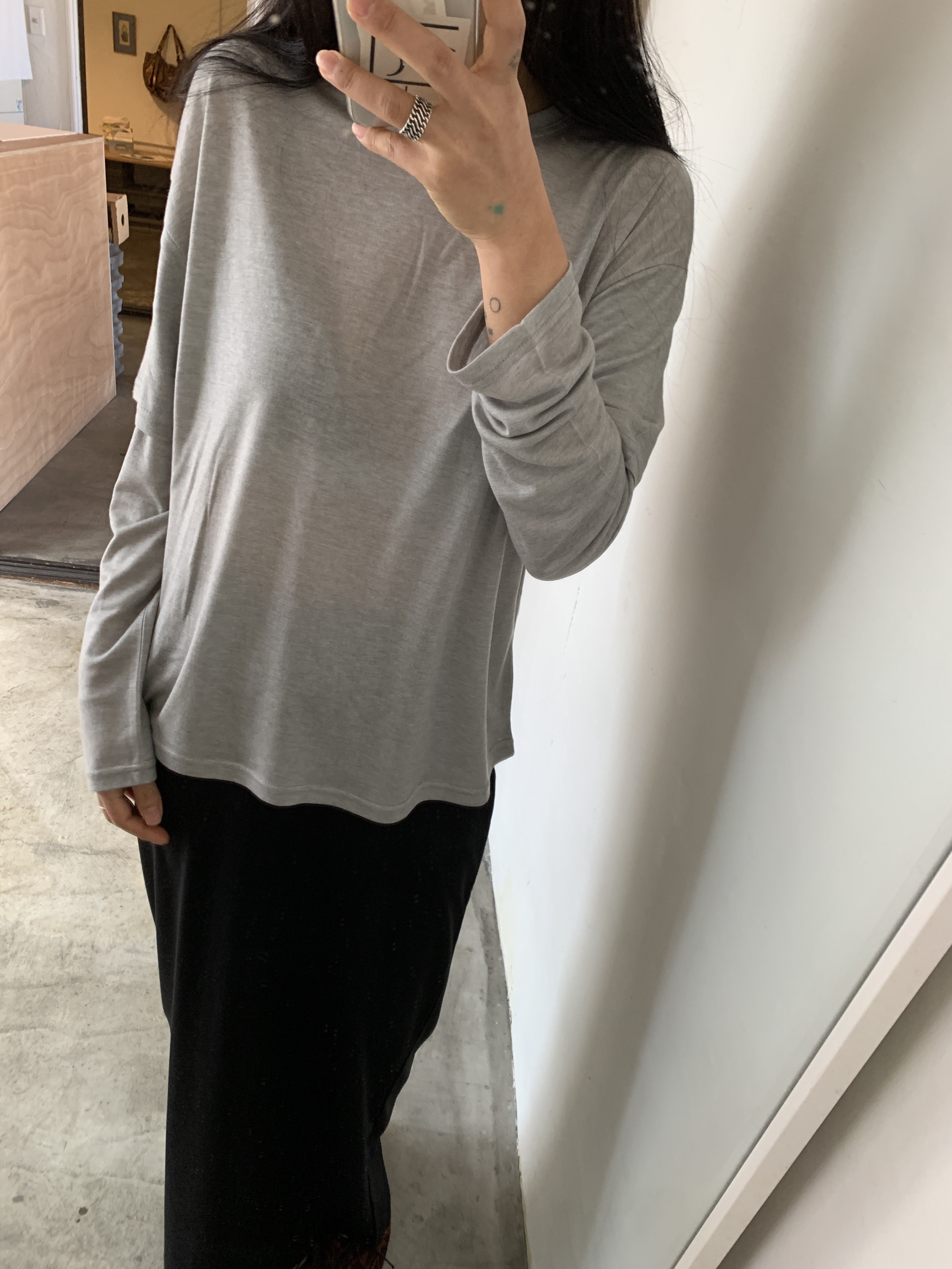 유연하게 흐르는 소재의 레이어드 티셔츠입니다.