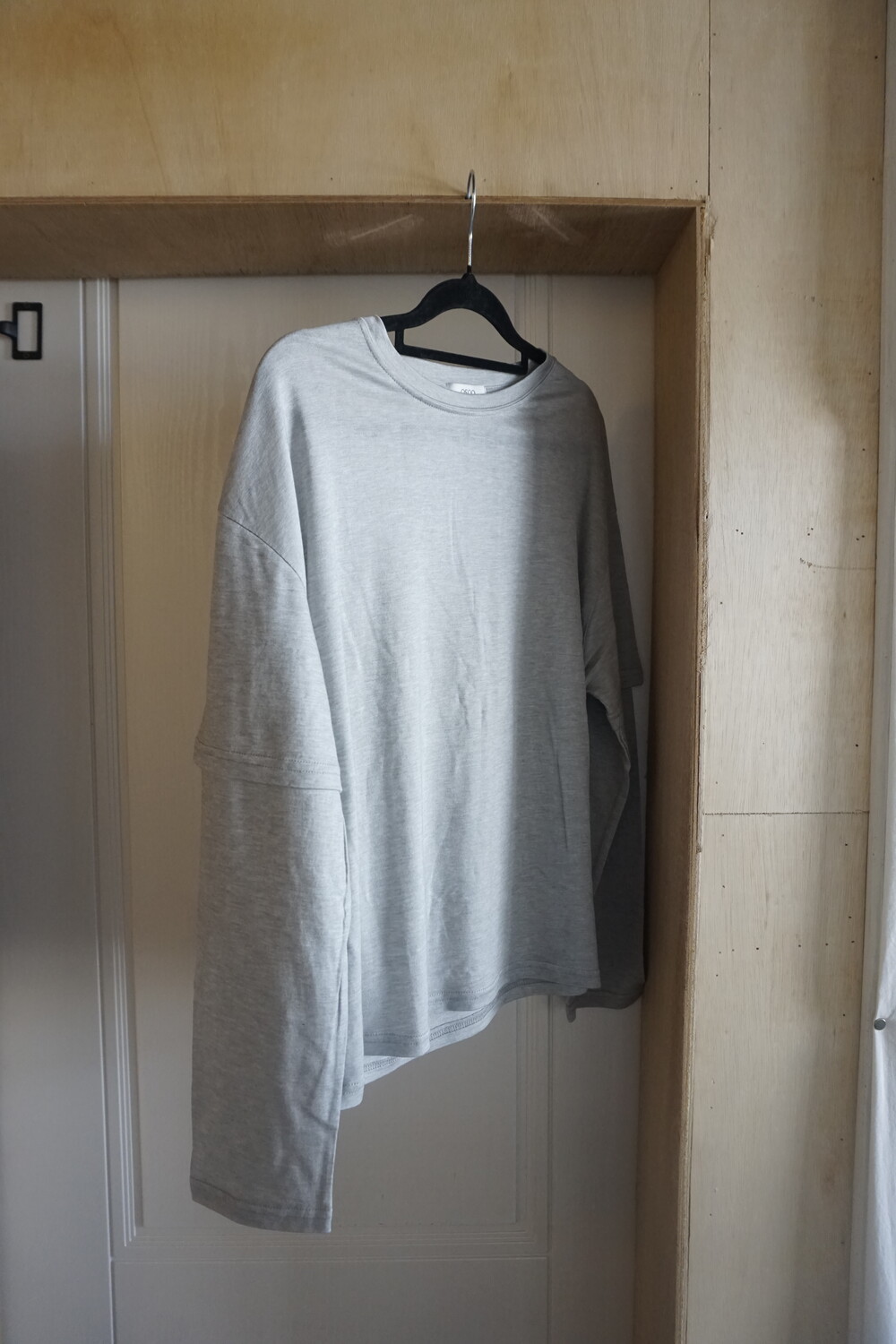 반팔과 긴 슬립이 함께 레이어링되어 있는 디자인이지만 두껍지 않고 얇아서 지금부터 한여름까지 다양하게 매치할 수 있는 제품이에요.