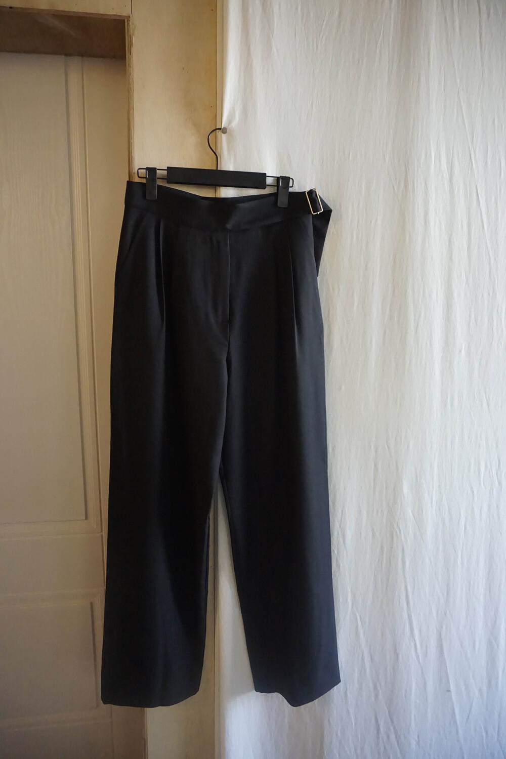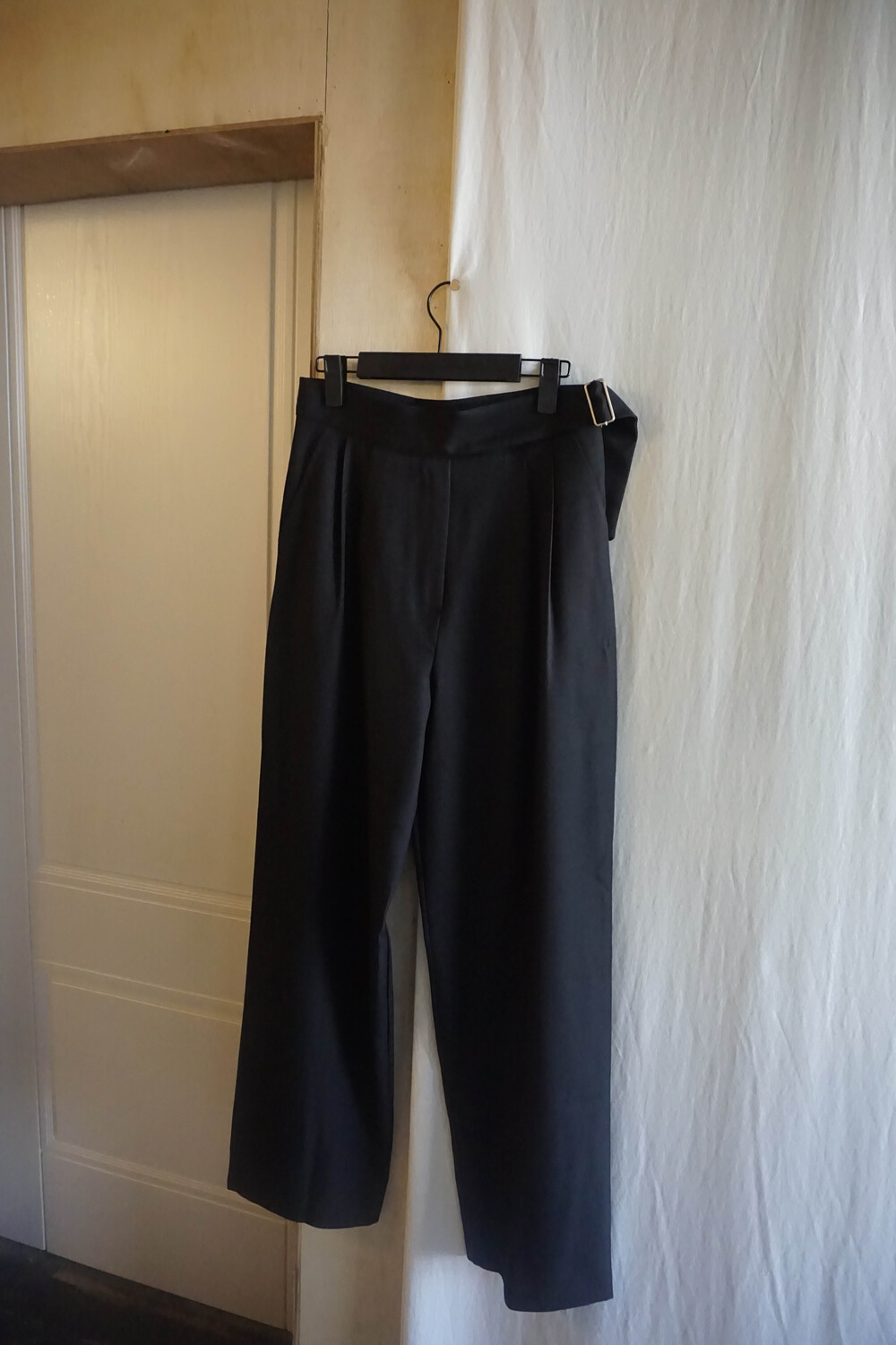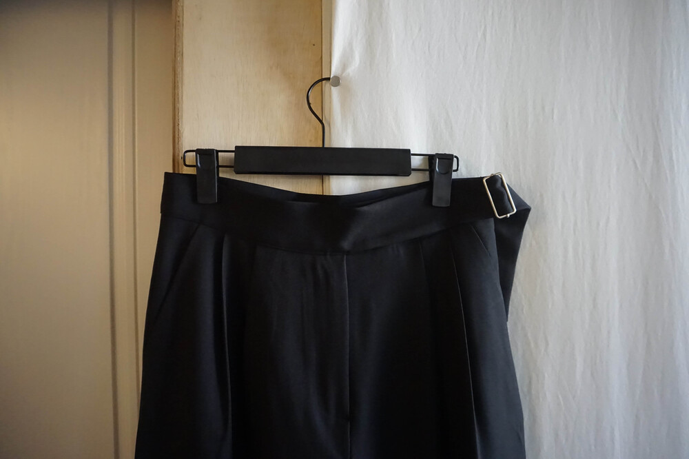 벨트 형식의 슬랙스를 입고싶어서 셀렉해본 제품이에요. 디링벨트가 포인트이며 살짝 아래로 좁아지는 형태가 매력적인 제품이랍니다.